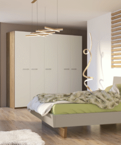 Prostoren volumen visokih garderobnih omar omogoča popolno prilagodljivost pri izboru in namestitvi kompaktnih polic, po višini nastavljivih izvlečnih polic in predalov z mehkim zapiranjem, pregrad in vseh ostali elementov, ki so na voljo pri omarah po meri.